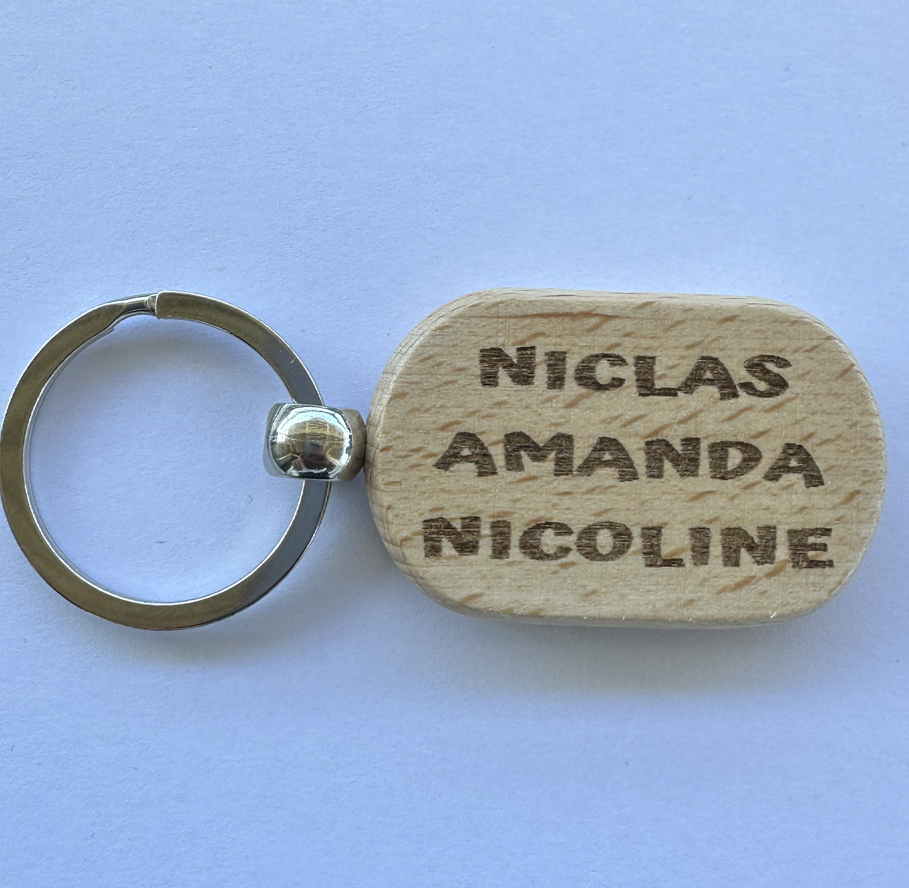 Nøglering i træ. 4.5 cm x 3.0 cm.