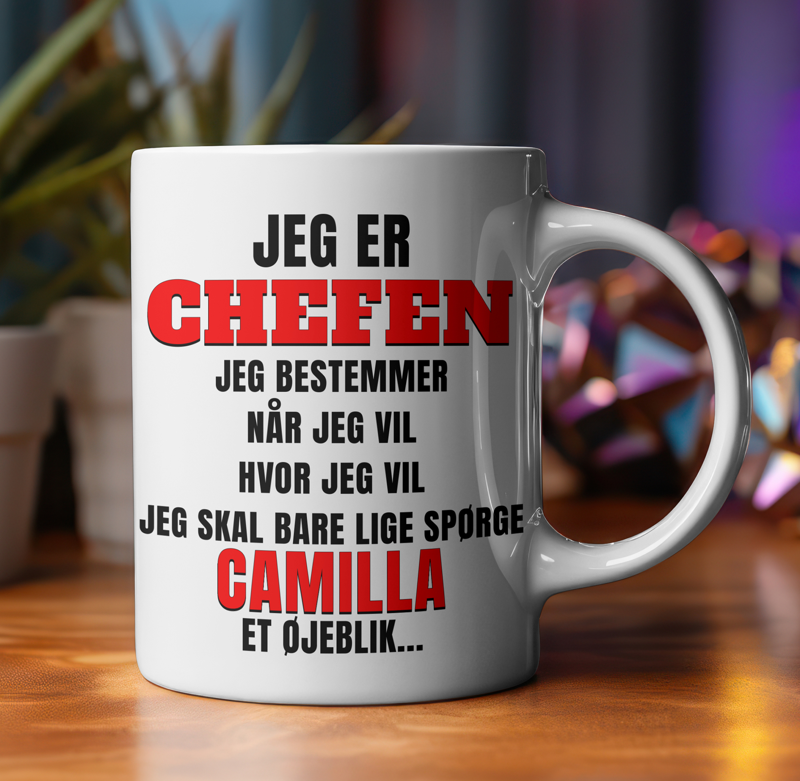 🔹 Personliggør det! Tilføj dit eget eller en andens navn for at gøre det unikt. Perfekt som gave til kollegaen, vennen eller partneren, der “bestemmer” (eller næsten gør det).