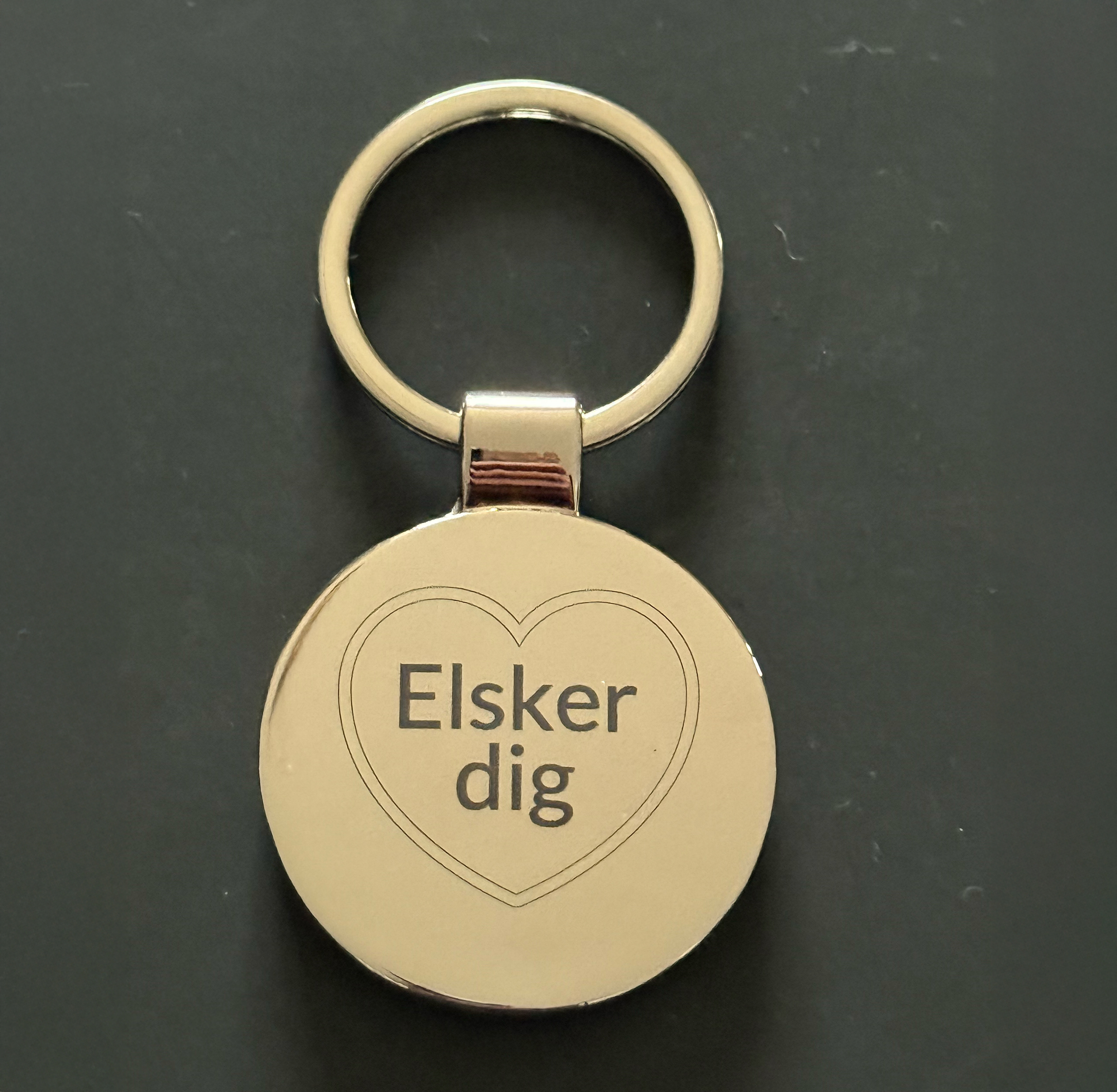 “Elsker dig” indgraveret i et hjerte på bagsiden